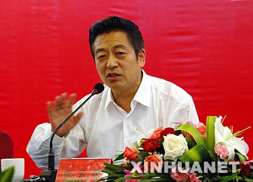 张云泉在江苏省劳动保障厅作信访与维稳的主题报告(9月22日摄)。