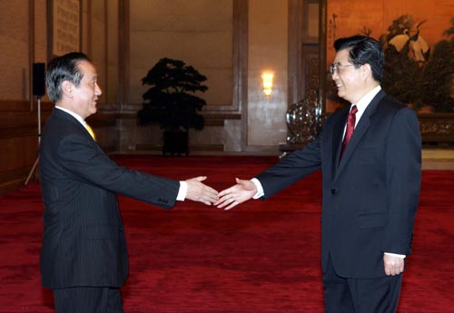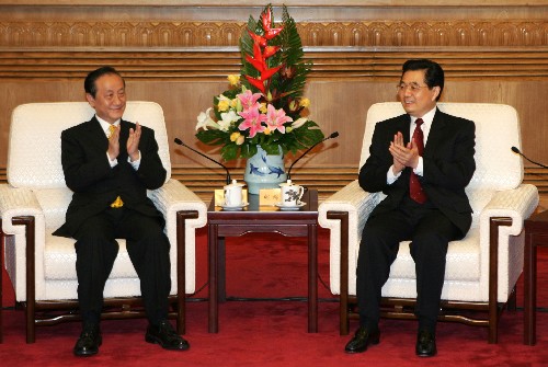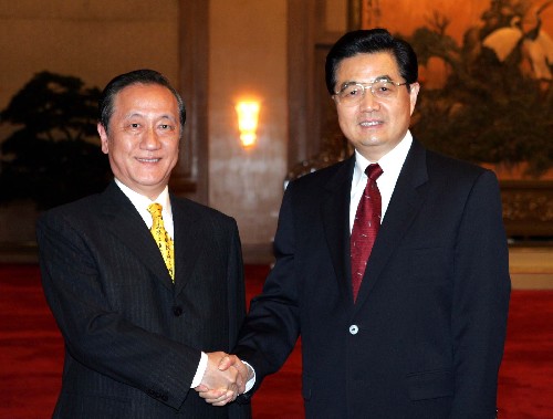 胡锦涛在人民大会堂会见新党主席郁慕明