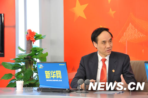 2010年4月6日,新华网推出“加快经济发展方式转变”系列访谈,第一场邀请到著名经济学家、民建中央副主席、全国人大常委会委员、全国人大内务司法委员会副主任委员辜胜阻谈“加快经济发展方式转变”做客新华网。图为辜胜阻回答网友提问。(资料图片)