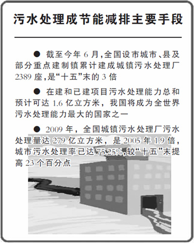 随着工业化、城镇化进程加快,经济快速发展,人民生活水平不断提高,污水排放量也在不断增加。城镇污水处理事业的发展,直接关系到城市公共卫生安全与人居环境质量的改善。“十一五”期间,我国不断加大对城镇污水处理设施建设的投资力度,积极引入市场机制,城镇污水处理事业进入发展快车道。截至2010年6月,全国设市城市、县及部分重点建制镇累计建成城镇污水处理厂2389座,总处理能力达到1.15亿立方米/日,分别是“十五”末的3倍和2倍。西藏自治区第一座污水处理厂昌都地区污水处理厂的建成调试,标志着我国所有省、自治区、直辖市均已建成城镇污水处理厂,其中北京、上海、山东、江苏、浙江、河南、安徽、海南等省(直辖市)实现了县县建有污水处理厂。