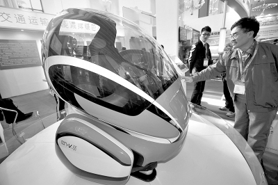 11月24日,参观者在绿博会上观看电动联网概念车。新华社发(陈晓根摄)