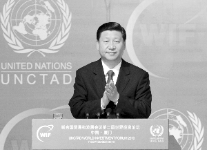 习近平说,2009年中国吸收外资达到900亿美元规模,位居世界第二;今年上半年,中国新批准设立外商投资企业1.2万家,实际使用外资514亿美元,同比分别增长19%和21%;中国境内投资者共对全球111个国家和地区进行了直接投资,实现非金融类对外直接投资178亿美元,同比增长44%。中国继续被联合国贸发会议和外国投资者公认为全球最具吸引力的投资东道国。