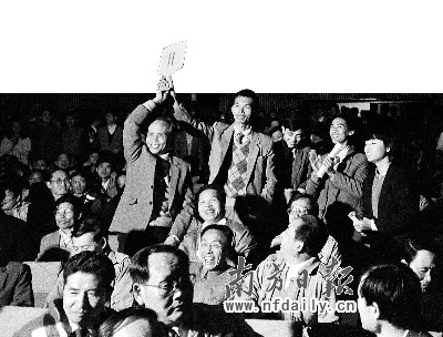 1987年12月1日下午,深圳举行首次土地使用权拍卖,经过长达17分钟的轮番叫价,手举11号牌的买主成为最大的赢家。刘廷芳 摄