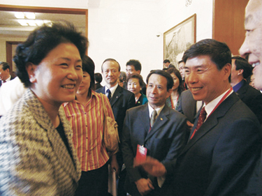 图1全国政协副主席、中央统战部部长、中国和平统一促进会执行副主席刘延东与会议代表亲切交谈。