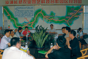 图1:漳州市漳浦县海峡两岸农业合作实验区负责人向访问团介绍情况。