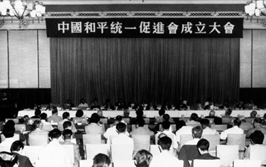 1988年9月22日,由社会各界人士组成的促进中国和平统一的民间团体“中国和平统一促进会”在北京宣告成立,参加发起的二十三家单位为个民主党派和有关人民团体。 大会通过了《中国和平统一促进会章程》,选举了领导成员,通过并发表了《中国和平统一促进会宣言》。 时任中共中央书记处书记、全国政协副主席、中央统战部部长阎明复出席成立大会并讲话。