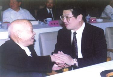 图2全国政协副主席、中央统战部部长王兆国9右)亲切慰问孙越崎会长。