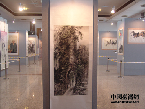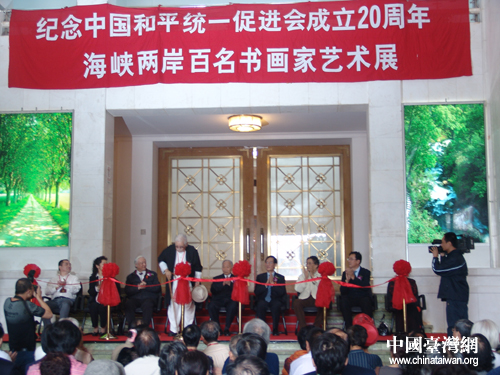 中国台湾网9月25日北京消息 为纪念中国和平统一促进会成立20周年,“海峡两岸百名书画家艺术展”今天上午在北京民族文化宫举行。