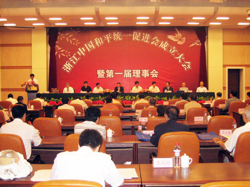 会议审议通过了《浙江中国和平统一促进会章程》,选举了第一届理事会会长、执行副会长、副会长、秘书长、常务理事等。中共浙江省委副书记夏宝龙当选为第一届理事会会长。各民主党派省委会和省工商联的负责人等出席大会。