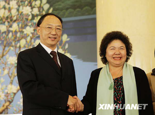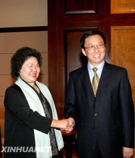 5月22日,中国奥委会主席刘鹏在北京会见高雄市长陈菊。新华社记者 邢广利 摄