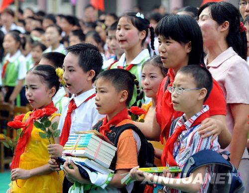 当日,广西岑溪市第二小学开展“关爱灾区儿童 同欢‘六一’佳节”活动。通过多彩的节目表演,让最近转学来校的两名灾区儿童感受浓浓的集体情谊,共同迎接“六一”儿童节到来。 新华社记者张爱林摄