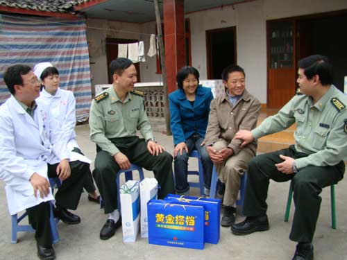 新华网四川频道4月27日电(杨欢欢)4月24日,解放军成都军区总医院派出6支专家医疗服务队,携带药品和医疗器械分赴四川地震重灾区都江堰、青川、什邡等地回访地震伤员。