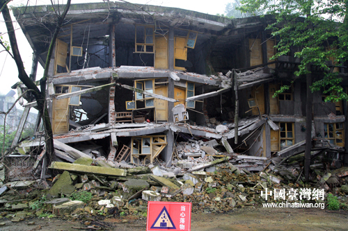 被地震摧毁的职工宿舍楼。(中国台湾网 田云鹏 摄)