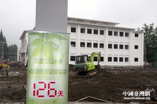 “顶新新建小学”还在紧张施工,预计今年9月份交付使用。(中国台湾网 钟宝华 摄)