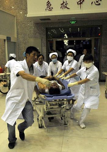7月6日凌晨,医护人员在新疆维吾尔自治区急救中心抢救伤者。新华社记者 沈桥 摄