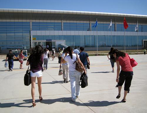 乘客下飞机后走进伊宁机场大厅(7月8日摄)。新华社记者 何俊昌 摄