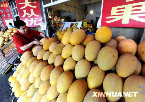 目前正值新疆乌鲁木齐各种时令水果消费旺季,当地农业部门从吐鲁番、叶城、石河子等地组织大量西瓜、哈密瓜、杏、葡萄等水果投放市场,受到市民欢迎。新华社记者李紫恒摄