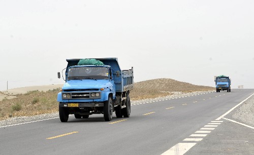 7月14日,汽车行驶在和田至阿拉尔公路上。新华社记者 赵戈 摄
