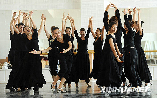 7月20日,演员参加庆祝新中国成立60周年献礼节目的编排。新华社记者 沙达提 摄