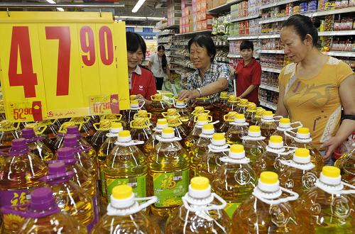 7月20日,市民在好家乡超市选购食用油。地处青年路的好家乡超市是乌鲁木齐最大的超市之一,目前,超市里商品供应充足,市民在这里可以选购自己所需的商品。新华社记者 赵戈 摄