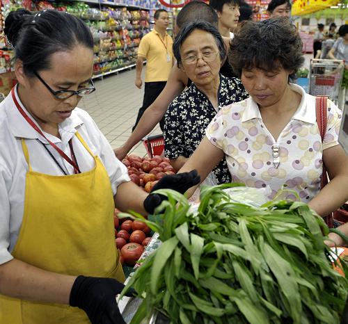 7月20日,市民在好家乡超市选购蔬菜。新华社记者 赵戈 摄