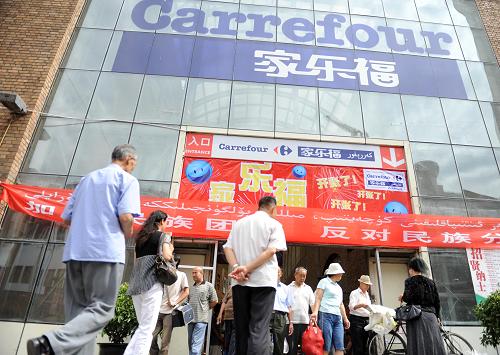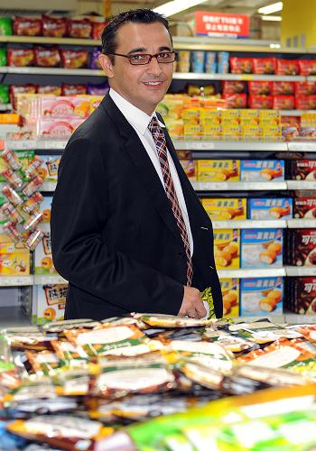 7月23日,家乐福中国西北区总经理谢夫林专程从郑州赶来为重新开业的家乐福乌鲁木齐大巴扎店助阵。新华社记者 沙达提 摄