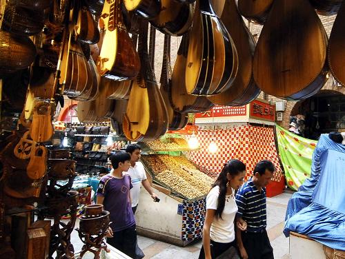 来自法国的游客在逛乌鲁木齐国际大巴扎(7月23日摄)。新华社记者 李紫恒 摄