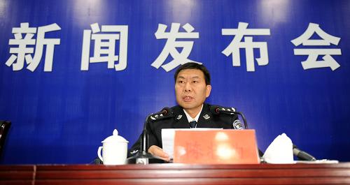 8月4日,新疆维吾尔自治区公安厅副厅长、乌鲁木齐市公安局局长陈壮为在新闻发布会上通报“7.5”打砸抢烧事件侦查进展情况。 新华社记者 沙达提 摄