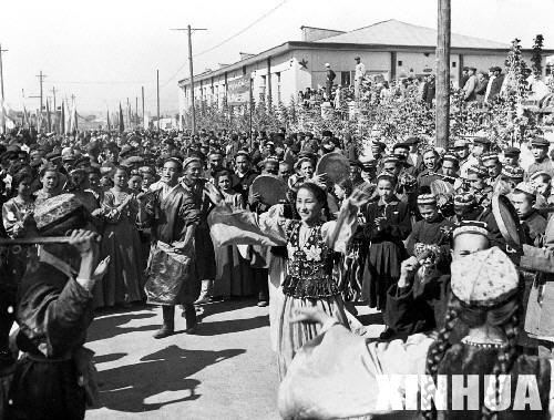 1955年10月1日,新疆各族人民欢庆自治区成立