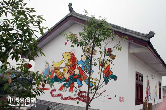 遵道棚花村年画,勾勒一副龙门山下的世外桃源。(中国台湾网 钟宝华 摄)