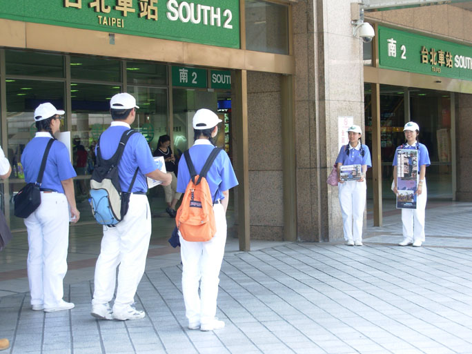 台北车站为汶川地震募捐的台湾民众]]>