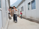 北川县桂溪板房区一位孩子玩滑板]]>
