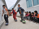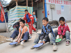 北川县孩子们高兴地玩滑板]]>