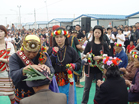 一对北川新人正在给路过的客人分喜烟]]>