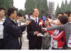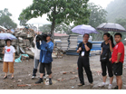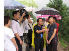 台湾著名新闻主播李四端先生在北川地震遗址冒雨采访]]>