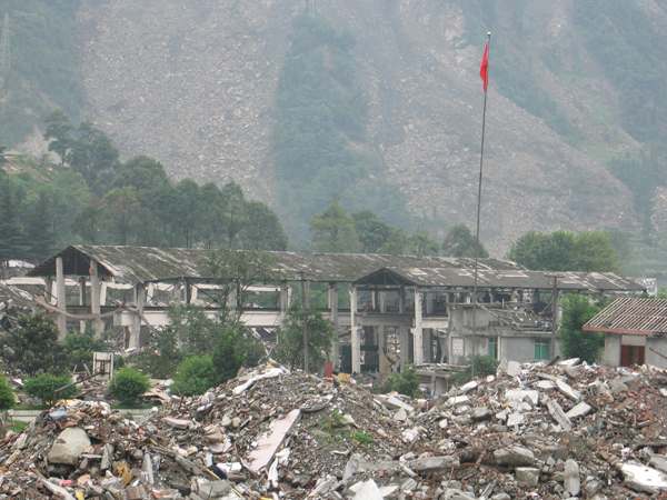 震不跨的五星红旗(2008.7志愿者戴涛摄影)