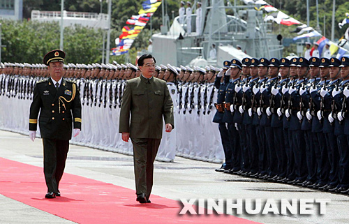 6月30日上午,中共中央总书记、国家主席、中央军委主席胡锦涛在香港昂船洲海军基地检阅中国人民解放军驻香港部队。 新华社记者李学仁摄