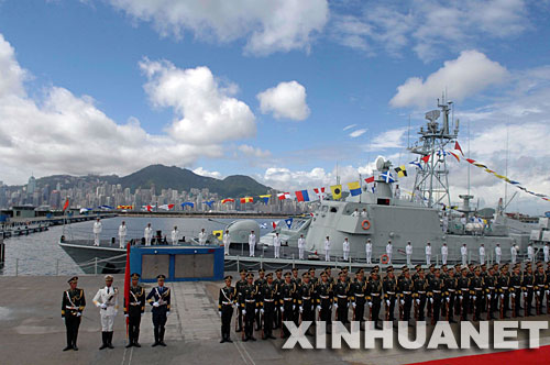 6月30日,香港昂船洲海军基地准备就绪,等待中共中央总书记、国家主席、中央军委主席胡锦涛检阅。 新华社记者公磊摄