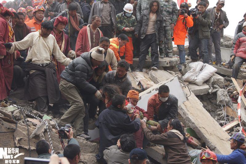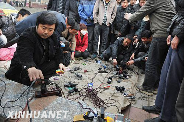 4月16日,唐全(前左一)在为手机充电。新华社记者 李紫恒摄 一场地震劫难,让滋润整个神州的“三江源”满目疮痍,遍地废墟。 一场生死救援,让灾区的人民感受到无比的温暖,创造着一个又一个奇迹。 与时间竞速,和生命赛跑。在黄金救援期的第三天,全体中国人用行动书写着对生命的尊重,彰显了真情的无价。 生命大搜救 国际救援经验表明,地震发生后的72小时是最关键的“黄金救援时间”。 4月16日,玉树地震救援进入第三天,“黄金救援72小时”正一分一秒地无情流逝。在搜救现场,不少群众翘首企盼新的生命奇迹出现。 冲刺,为了生命的奇迹。从党中央、国务院到各地方各部门,从解放军、武警部队、消防官兵到公安民警,从专业救援队到普通志愿者,从各级领导干部到广大人民群众……每一个人都在争分夺秒,每一个人都在与死神赛跑。 4月15日下午,中共中央政治局常委、国务院总理温家宝飞抵青海玉树地震灾区。他指出,当前,抗震救灾第一位的工作是救人。只要有一丝希望,就要尽百分努力,坚持下去,决不放弃。 快、快、快!多争取一秒就可能多抢救一个生命。 “我们的官兵们有的是刚拔了吊瓶,有的是刚刚呕吐完,就立即赶往搜救现场,由于在高海拔环境下昼夜奋战,很多人已经接近体力的极限。”青海消防总队兰州支队的一个战士刚刚从一个救援地点撤下来,嘴唇没有血色,眼中满是血丝,来不及向记者多说一句话,就匆匆赶往下一个传出有生命迹象的救援地点。 一根根木桩被撬起,一块块砾石被挖出,一个个身影在闪动。16日,来自全国各地的近百支搜救队在废墟里展开拉网式排查,克服高原高寒和连续作战等重重困难,突破体力和意志极限与时间赛跑,以期寻找生命的奇迹。 快、快、快!多付出一份努力就多一份生的希望。