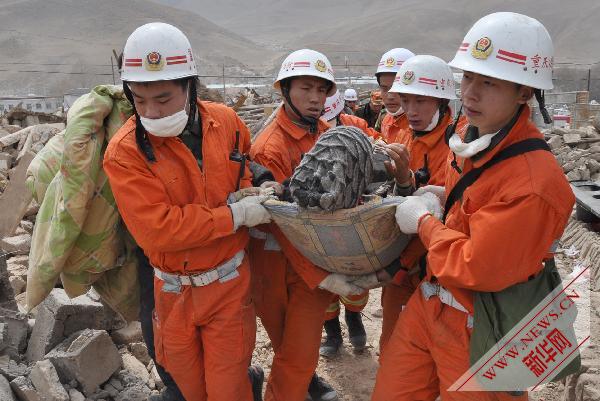 正在救援现场指挥的公安部消防局副局长王沁林说:“玉树地处高原高寒地带,许多被困者可能撑不到72小时的生命极限。我们在和时间赛跑,绝不放过任何一个有生命迹象的地点。”