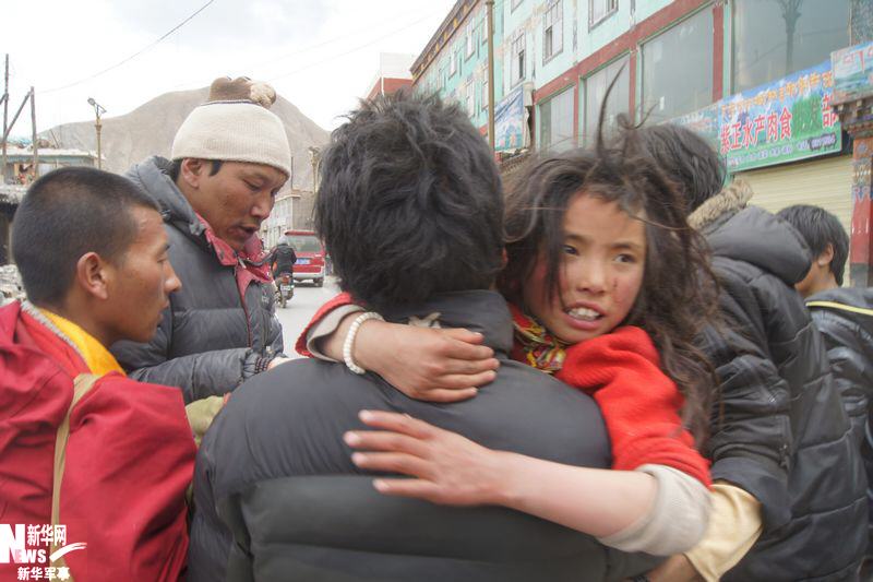半个小时后,小女孩被抱到结古镇嘎结古寺内搭建的帐篷中。她的小伙伴们一下子围了上来,紧紧地拉着她的手。舅舅端来一碗酥油茶,尝了尝凉热,送到她的嘴边。在黑暗的废墟中被掩埋了54个小时的孩子,一下子哭了起来。激动不已的家人们用藏语你一句我一句不停地说着,有的还抹着眼泪,为孩子成功获救而庆幸。