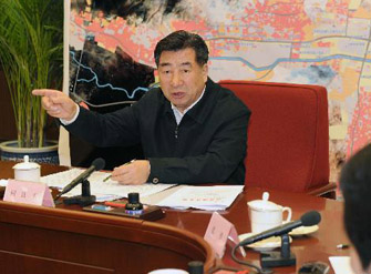 4月21日,中共中央政治局委员、国务院副总理、国务院抗震救灾总指挥部总指挥回良玉在北京主持召开总指挥部第八次全体会议。 新华社记者张铎 摄