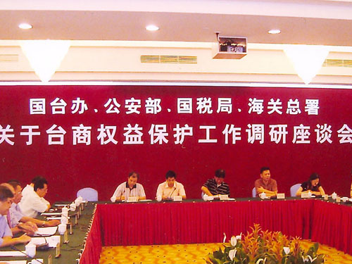 国台办会同公安部、国税局、海关总署,认真研究台商权益保护工作。