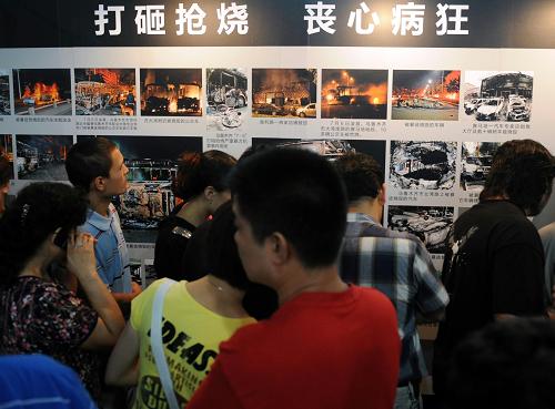 8月6日,观众在观看平息“7·5”事件纪实图片展。由新疆维吾尔自治区党委、人民政府主办的平息“7·5”打砸抢烧严重暴力犯罪事件纪实图片展8月5日在乌鲁木齐开幕,展览共展出400多幅图片,将持续到本月20日。 新华社记者 沙达提 摄