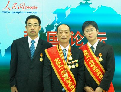 窦铁成(中)、代旭升(左)和洪刚(右)做客人民网强国论坛。(图片来源:人民网)