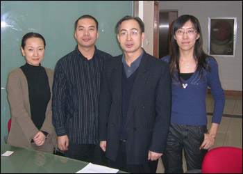 2006年12月31日,中国社会科学院台湾研究所王建民研究员(右二)接受中国国际广播电台采访。(图片来源:国际在线)