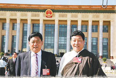 我们会一辈子记住这张照片:2007年10月15日上午,我们哥俩以党的十七大代表的身份,双双出席十七大开幕式时,在首都人民大会堂前留的影。西藏有16万共产党员,当选十七大代表的仅有28人,我们哥俩能同时当选,感到非常光荣和自豪!