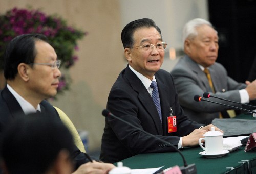 10月15日和16日,温家宝同志参加十七大四川代表团讨论。这是温家宝16日参加四川代表团讨论。新华社记者李涛摄