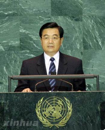 资料图片:2005年9月15日,联合国成立60周年首脑会议举行第二次全体会议,国家主席胡锦涛出席会议,并发表了题为《努力建设持久和平、共同繁荣的和谐世界》的重要讲话。新华社记者李学仁摄