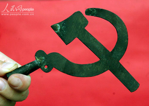 中华苏维埃时期用铁制作的中国共产党党徽。它不怕战火,随身携带,便于战时和恶劣环境中举行入党宣誓。